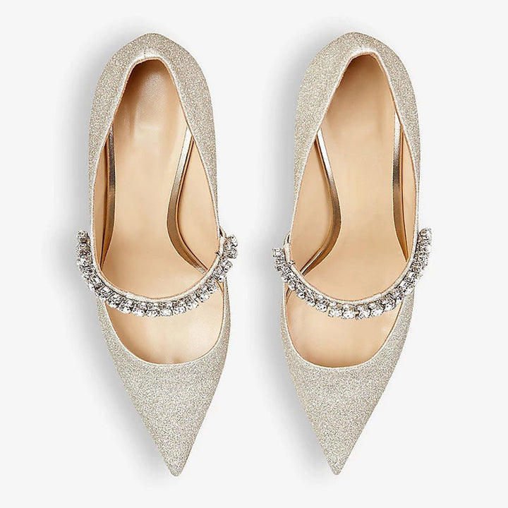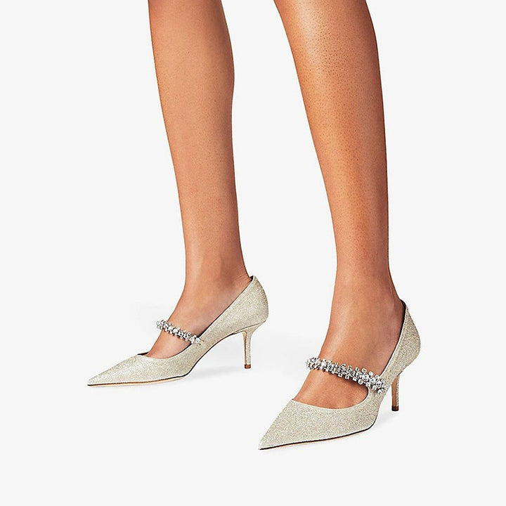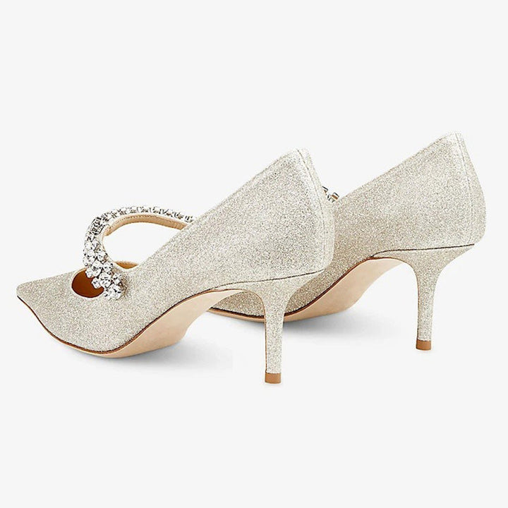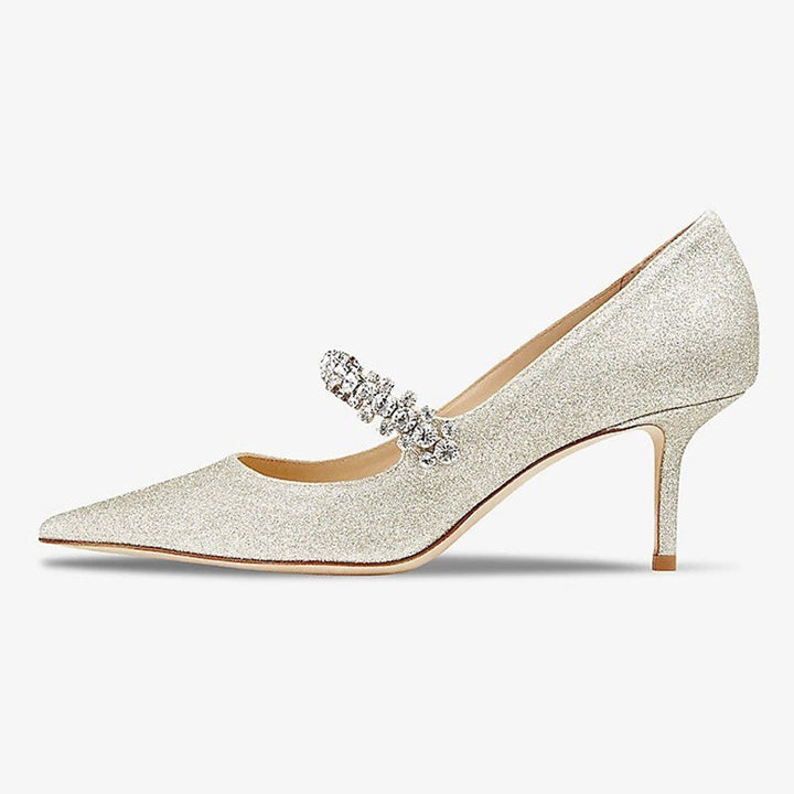 Glitter-Embellished Leather Heeled Mules