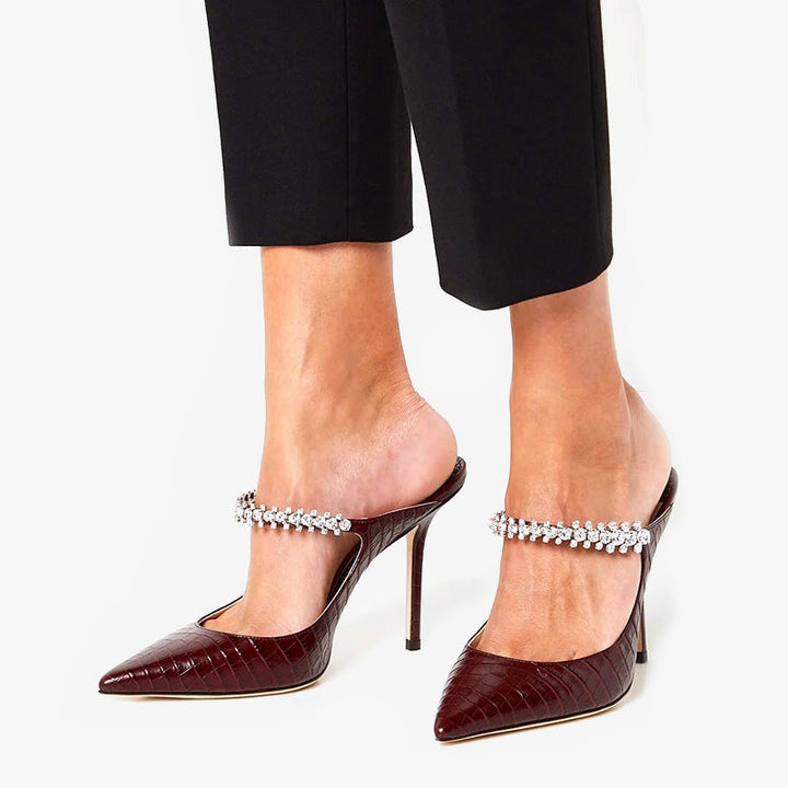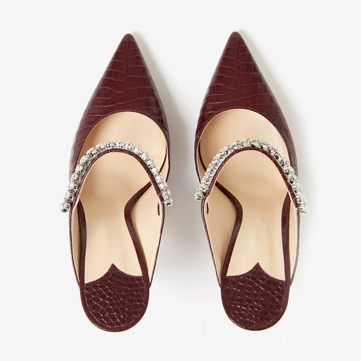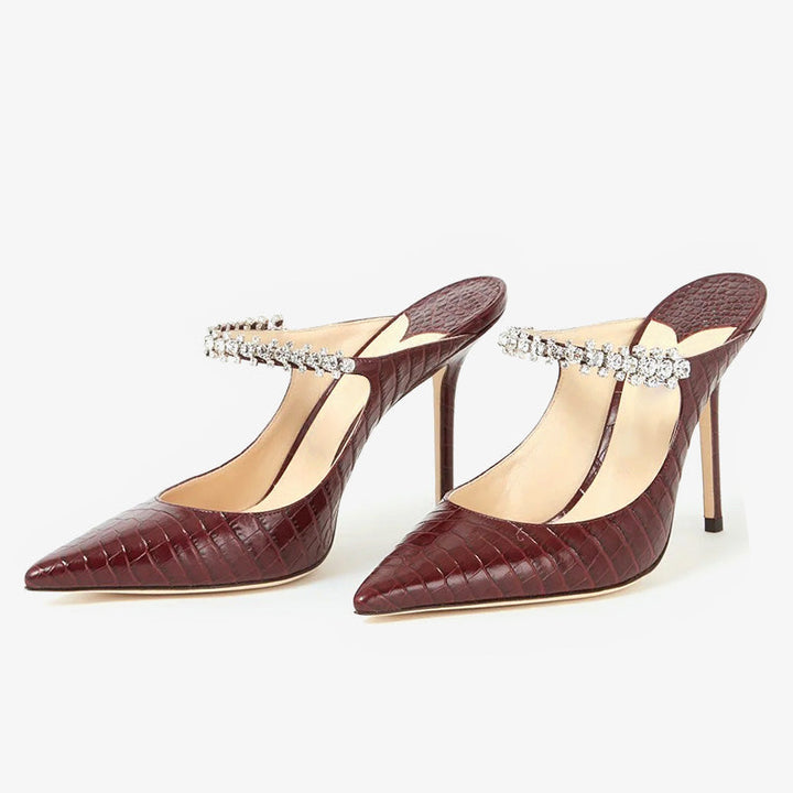 Brown Croc-Embossed Mules 100mm