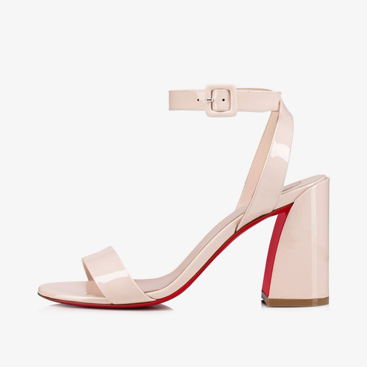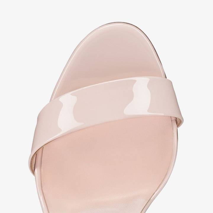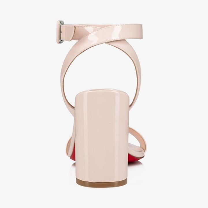 Timeless yet daring, this sandal features sleek lines and is crafted from beige patent calf leather. Set on an 100 mm heel, the design is enhanced with straps that cross behind the ankle, adding a sophisticated finish to the look.