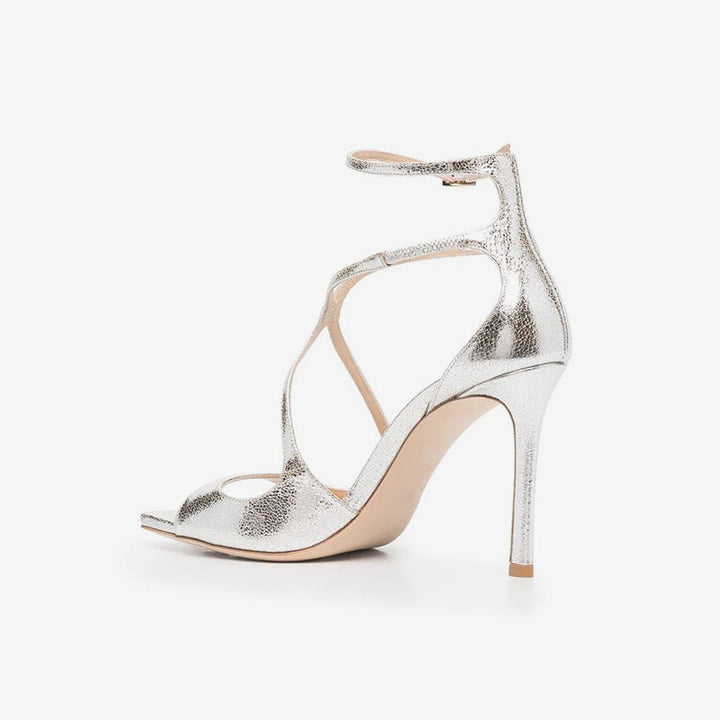 Grey Leather Stiletto Sandals