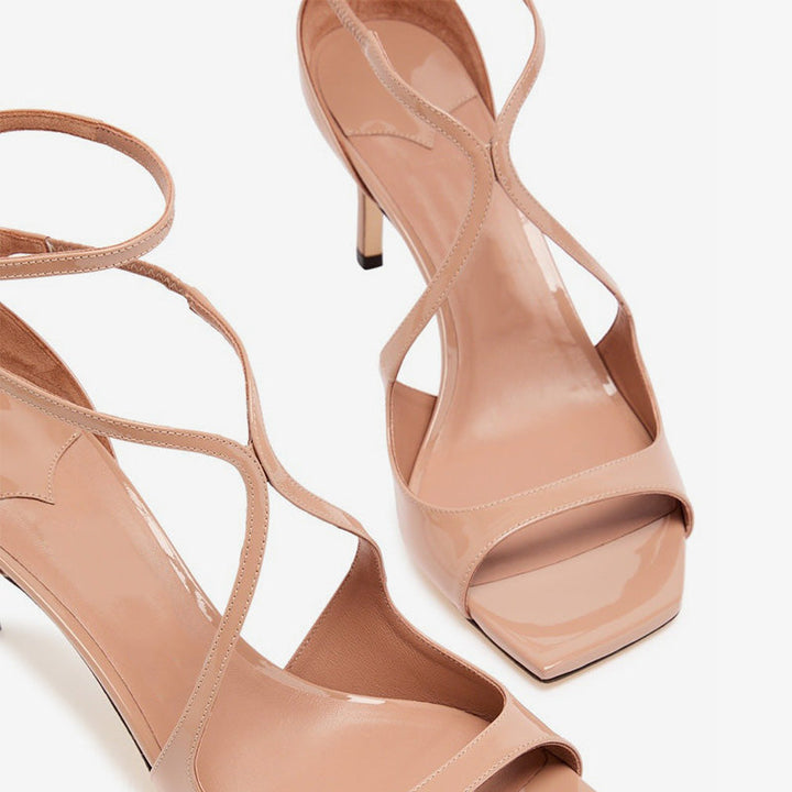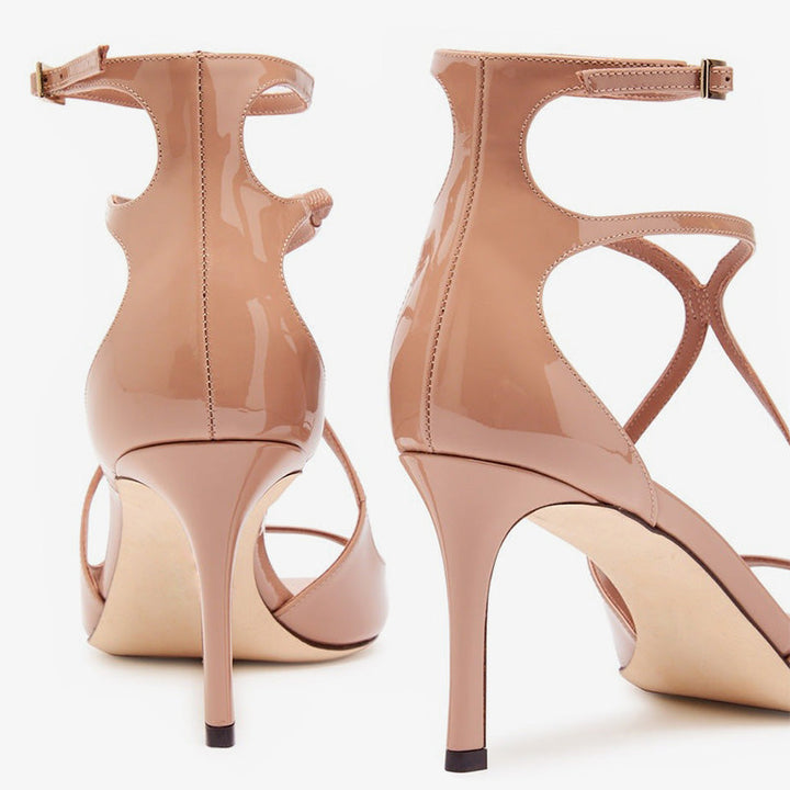 These sleek patent leather sandals feature cut-out straps, a square open toe, and a 75mm heel. Designed for both style and comfort, they include a partially elasticated side detail and an adjustable buckle-fastening ankle strap.Color:pink