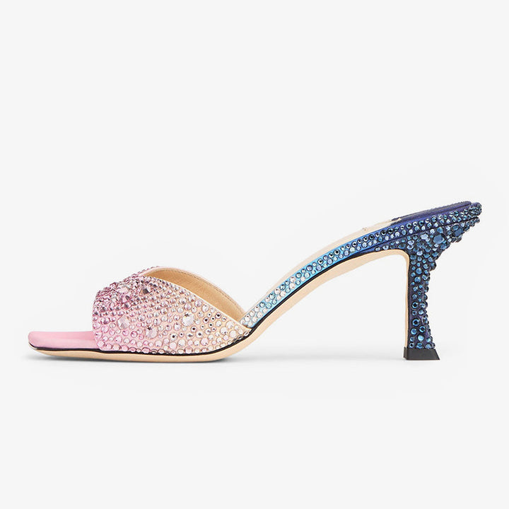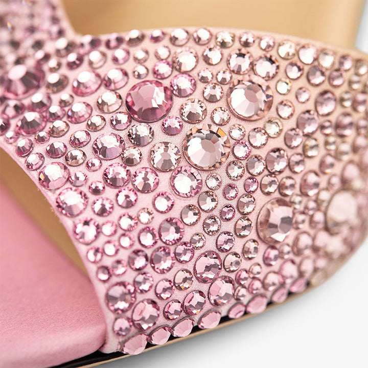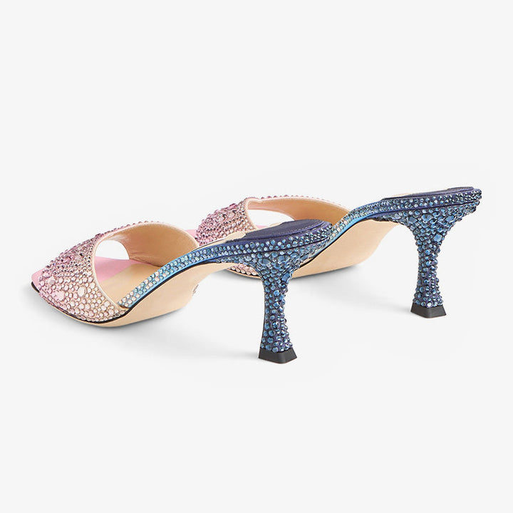 Made from satin and embellished with light-catching crystals, these sandals showcase a low-cut vamp, square toe, and sculpted 70mm heel. A refined silhouette that adds a touch of modern glamour.