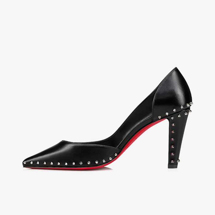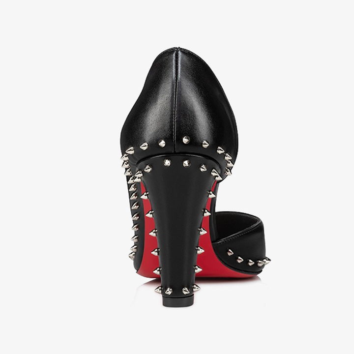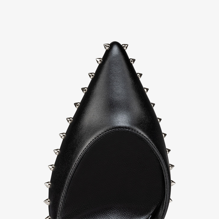 Black Calf Leather Pump with Mini Spikes