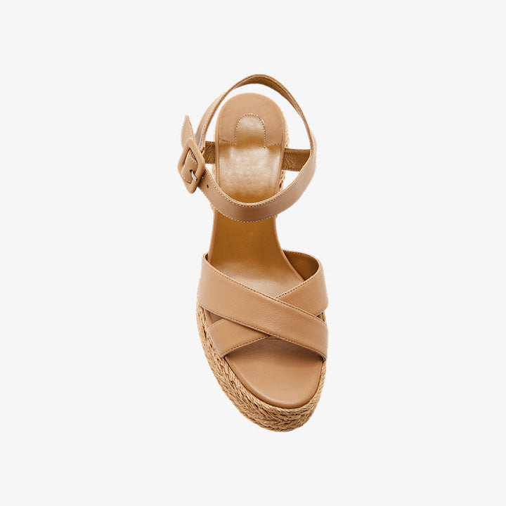 Crafted from smooth leather, these sandals sit on a jute-wrapped platform sole with a chunky block heel for added stability. Finished with a secure buckle fastening, they’re a chic choice for effortless summer style.