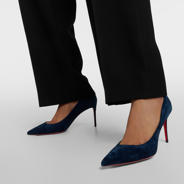 These 80mm pumps combine elegance and boldness. Crafted in luxurious navy blue calf suede, they feature a pointed toe and a slender stiletto heel. Finished with the signature red sole, they offer a perfect blend of timeless style and sophistication.
