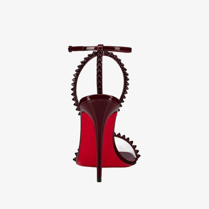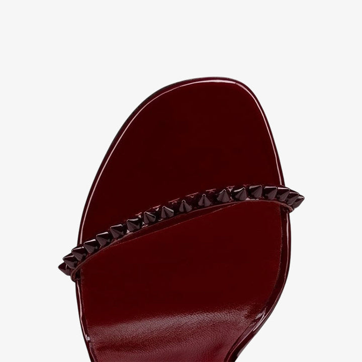 These sandals stand out with a refined silhouette, graceful arch, and subtle heel. Crafted from rich brown-red patent leather with a matching lining, they bring effortless elegance to any look.