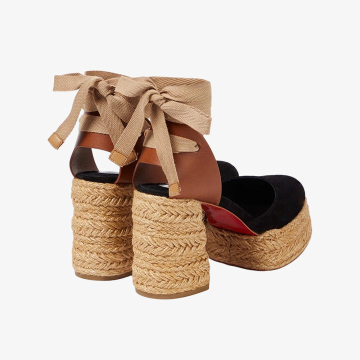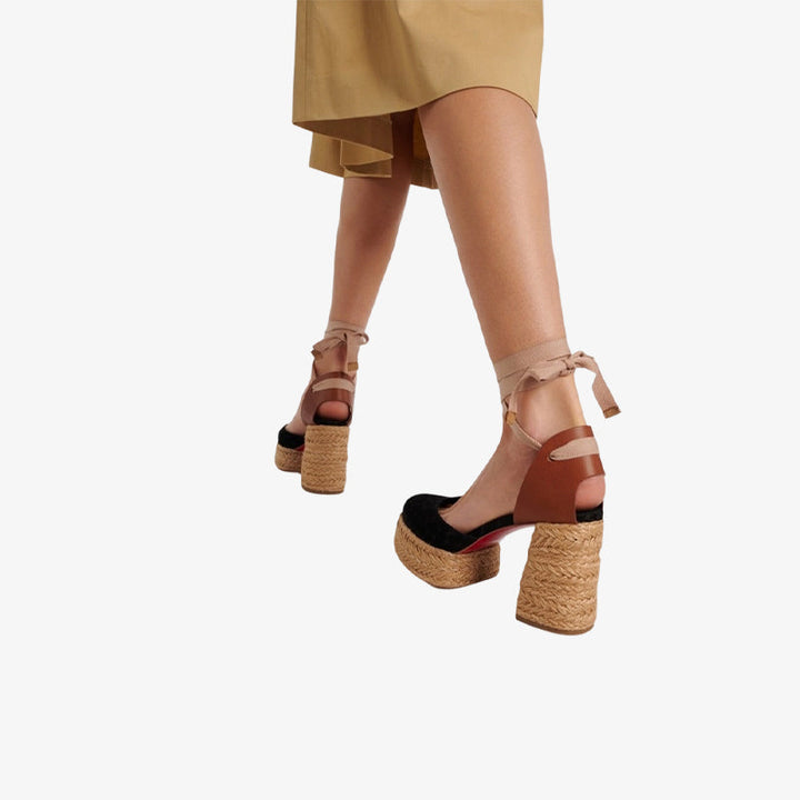 These beach sandals are crafted from soft black calf suede with a leather lining and a durable rubber sole. Designed with a round toe, adjustable buckle closure, and a sturdy block heel, they combine casual comfort with effortless style.