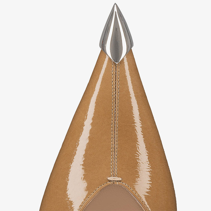 Brown Patent Leather Pointed-Toe Pumps