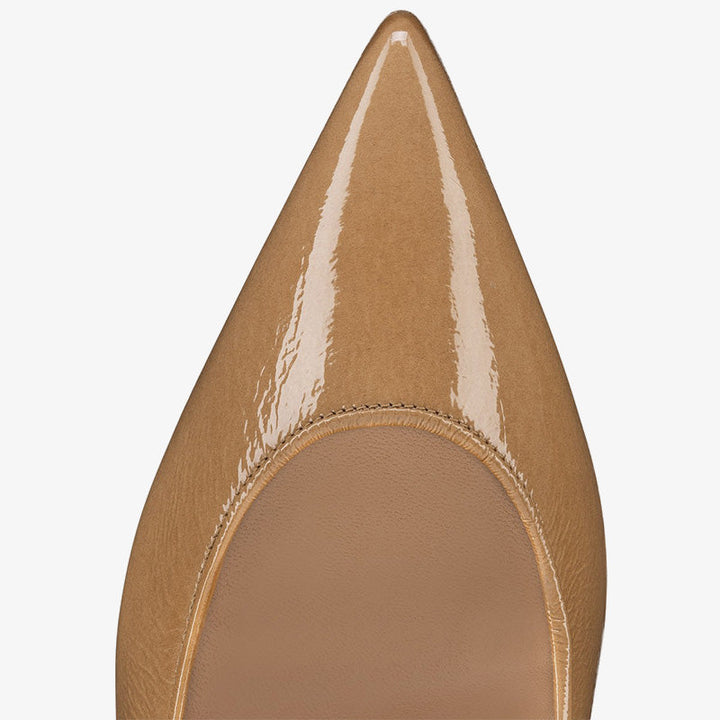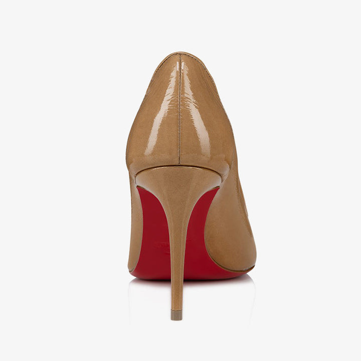 This sophisticated pump showcases the timeless elegance of the style, featuring a gently curved silhouette and a low-cut stitched vamp. Crafted in supple brown patent leather, it contrasts beautifully with the signature red sole. Set on an 80 mm stiletto heel, it delivers a refined and confident look. The flexible nature of patent leather offers enhanced comfort, while natural wrinkling may create slight variations from the product photos.