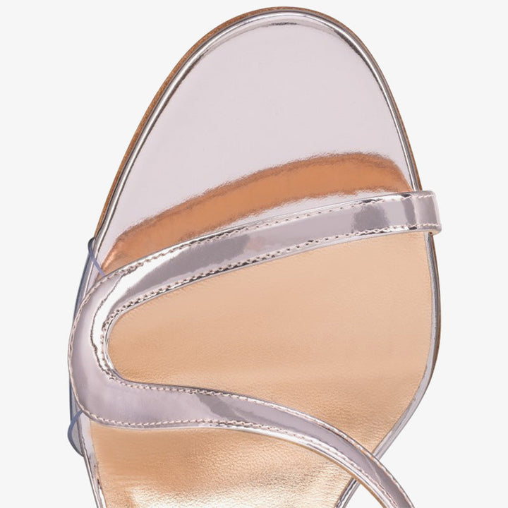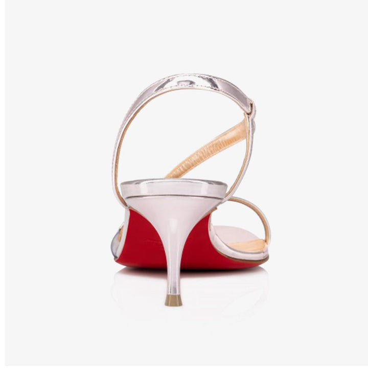 The refined sandal features a slender metallic strap in Vintage Rose laminated calf leather that gracefully wraps around the foot. With its delicate silhouette and understated details, this elegant style sits atop a slim stiletto heel that adds poise without overpowering. The soft Vintage Rose color adds a romantic charm, while the padded insole ensures added comfort. The heel measures approximately 60 mm, making it perfect for both daytime elegance and evening sophistication.