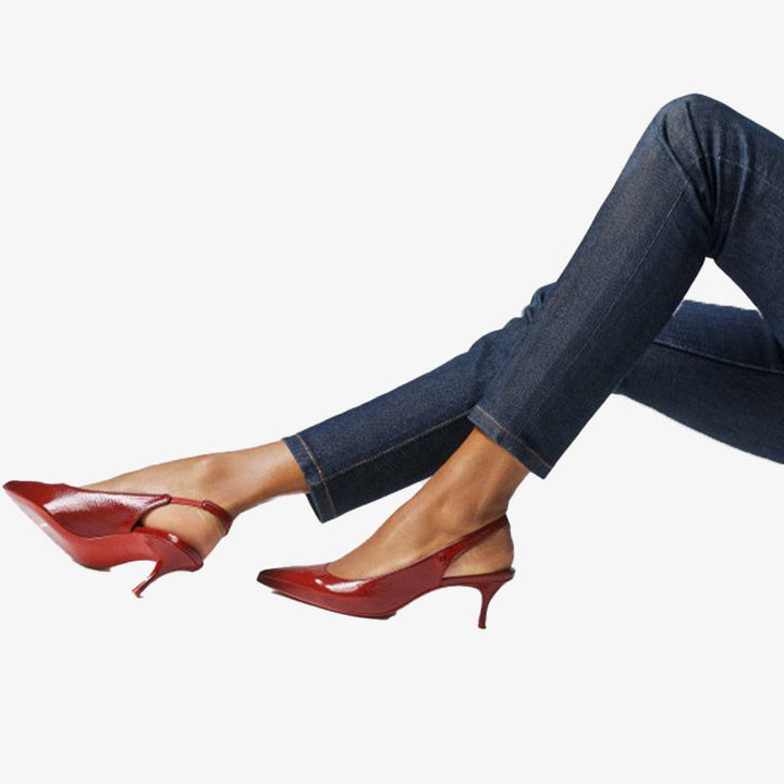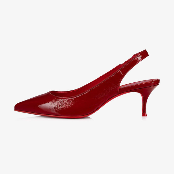 The pump is a refined style that audaciously enhances the foot with its urban pointed toe and low-cut vamp. Entirely crafted from red patent calf leather, this model is set on a 60 mm heel, offering elegance with ease. The glossy finish of the patent leather brings a touch of glamour to this timeless silhouette.
